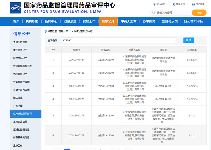 罗欣药业注射用LX22001新增适应症获批开展临床试验