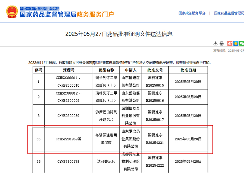 罗欣药业布洛芬注射用浓溶液获得药品注册证书