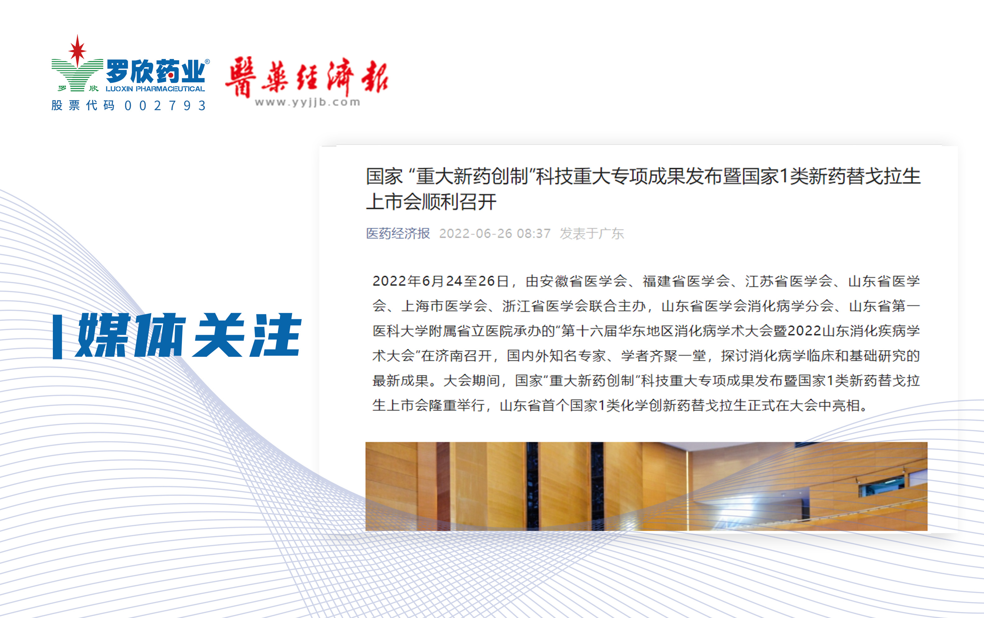 医药经济报报道 | 国家 “重大新药创制”科技重大专项成果发布暨国家1类新药替戈拉生上市会顺利召开