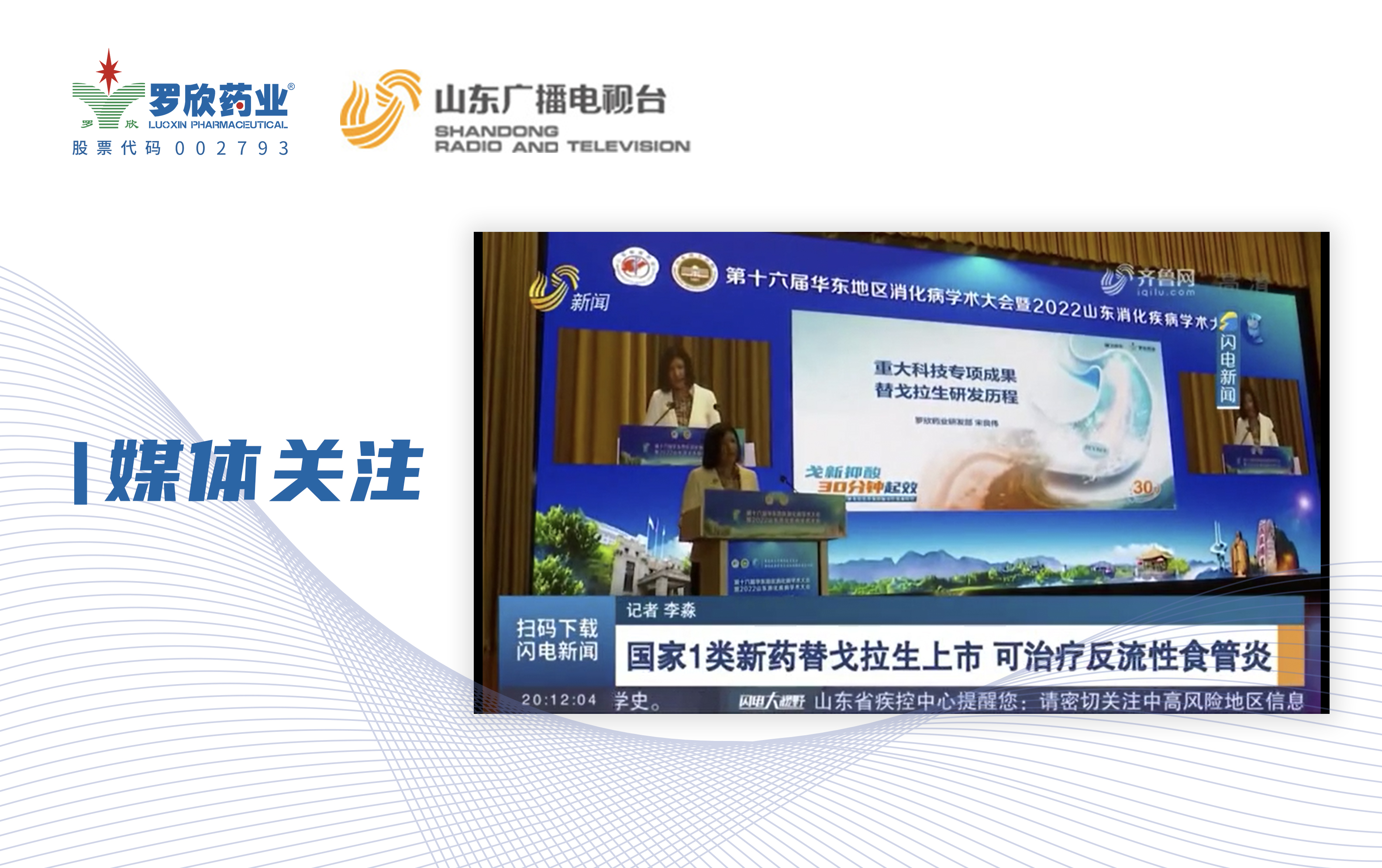 山东广播电台报道 | 国家1类新药替戈拉生上市 可治疗反流性食管炎