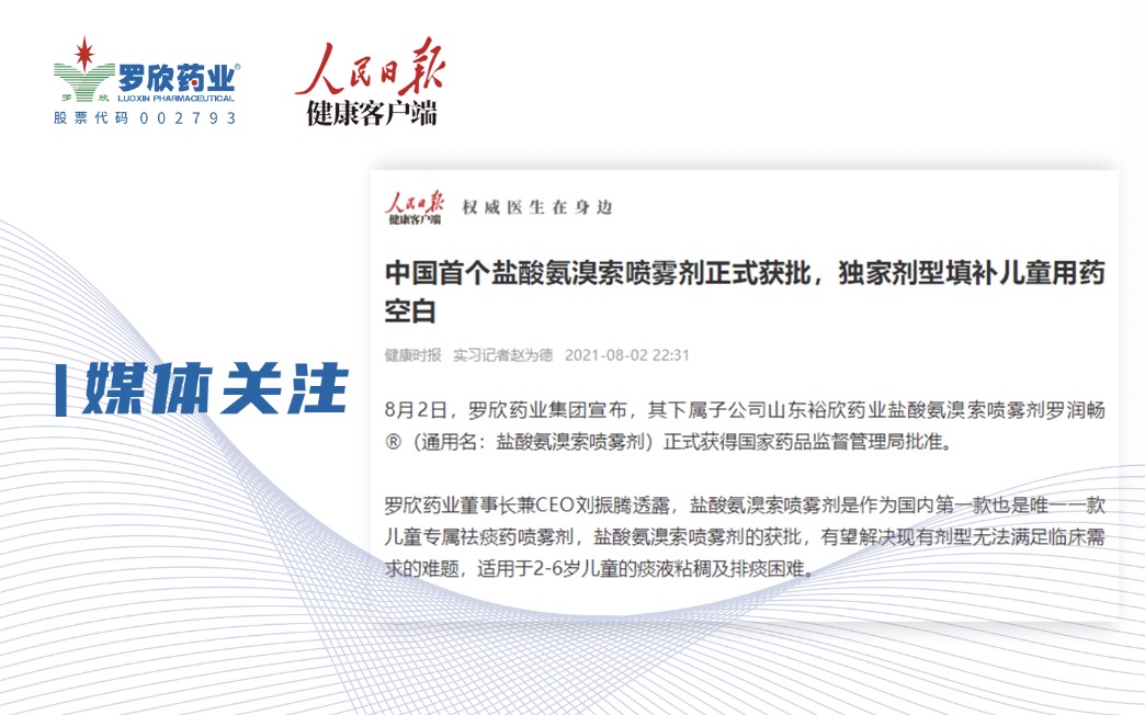 人民日报健康客户端报道 | 中国首个盐酸氨溴索喷雾剂正式获批,独家剂型填补儿童用药市场空白