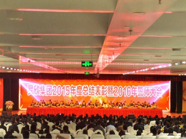 图为罗欣集团隆重召开2015年度总结表彰暨2016年誓师大会的场景