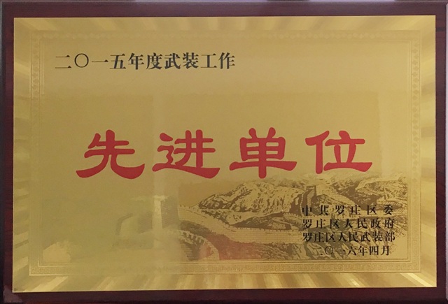 4月19日,罗庄区武装工作会议召开。我公司武装部在罗庄区武装工作中表现突出,被授予 “2015年度武装工作先进单位”、“先进民兵连”荣誉称号。陈正浩同志被授予“先进专武干部”荣誉称号。 多年来,公司武装部以爱国主义为核心,不断提升党管武装工作水平;认真组织民兵学习党的路线、方针、政策,以抓住提升战斗力为根本,夯实武装工作基础,树立新观念、拓展新领域、实现新发展;在公司安全保障和民兵建设等方面取得了突出的成绩,获得了罗庄区委、人武部领导的一致认可和表彰。
