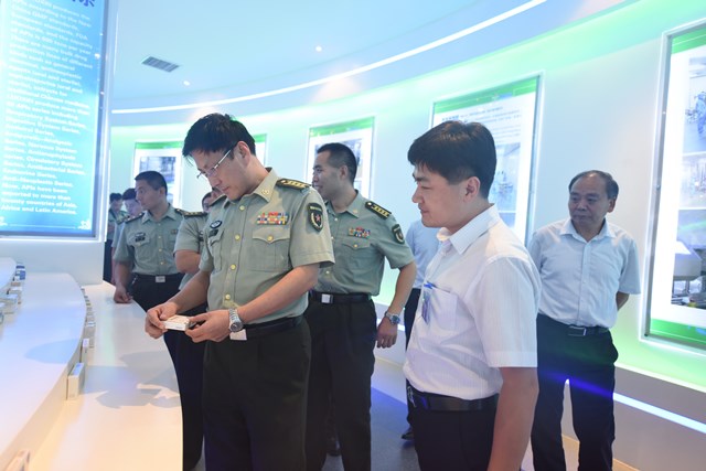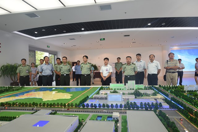 上图为山东省军区办公室主任王建阳(左一)一行参观我公司展厅时的情景