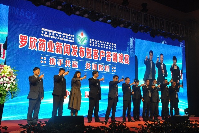 值此全国药品交易会召开之际,公司于2日晚,在昆明七彩云南温德姆至尊豪廷大酒店隆重举行“罗欣药业新闻发布暨客户答谢会”。来自全国各地的客商、医药界同仁、各新闻媒体记者参加了发布会。会上,公司发布了集团加快创新药物研发一年来取得的重大科技成果及打造年产50亿元规模原料药生产基地等新闻,并对一直以来关心支持罗欣发展的广大新老客户表达了诚挚的谢意。这次会议是公司成功举办的又一次大型答谢会,答谢会的成功举办,大大增进了罗欣与各地客商的友谊和业务交流,促进了双方的合作共赢。