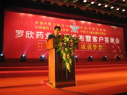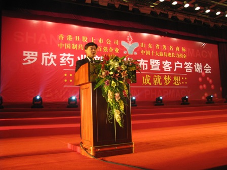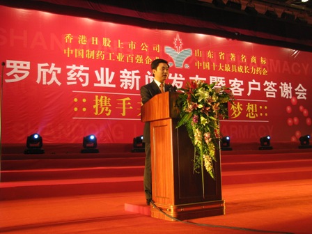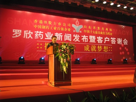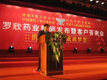 上图为罗欣集团副总兼齐鲁罗欣医药有限公司总经理栾远东先生在发布与齐鲁医院合资成立齐鲁罗欣医药有限公司的新闻