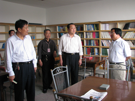 上图为山东省总工会民主管理部部长候国华(前排右二)参观公司“职工之家”