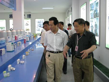 上图为罗庄区总工会主席申庆荣(前排左一)在公司工会主席张祥军(前排右一)陪同下参观展厅