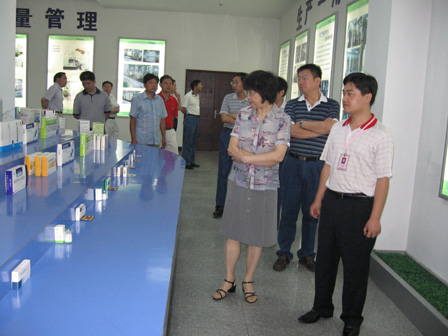 2008年7月17日,山东罗欣药业股份有限公司2008年第一次股东特别大会在三楼会议室隆重召开。参会股东、董事、监事在公司领导的陪同下参观了展厅以及三期产能扩建工程等,对公司发展情况进行了全面了解。下图为公司股东、董事、监事在公司执行董事韩风生先生(右一)陪同下参观公司展厅。