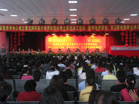 2008年10月23日上午,山东罗欣药业股份有限公司在公司四楼礼堂隆重举行“省级技术中心成立暨沈阳药科大学罗欣药业博士后流动工作站、沈阳药科大学罗欣药业教学培养基地、沈阳药科大学罗欣药业实习基地揭牌庆典仪式”。沈阳药科大学校长吴春福,临沂市委常委、市委秘书长李峰,市政府党组成员市长助理宋法亮,沈阳药科大学教务处处长夏焕章,沈阳药科大学国际合作研究中心主任高峰,临沂市食品药品监督管理局局长崔增久,临沂市卫生局副局长刘建广,临沂市科技局副局长赵世荀,临沂市经贸委副主任李俭,全国人大代表、临沂市人大常委会委员、临沂市人民医院党委书记、院长尹传贵,罗庄区委书记王行华,罗庄区委副书记、区长姜玉鹏,罗庄区人大主任山长青,罗庄区政协主席高文堂,罗庄区经贸局局长谢成琦,罗庄区科技局局长郭士林,罗庄街道党工委书记张连胜等领导参加了庆典仪式。参加这次揭牌庆典的还有罗欣公司员工1000余人。同时这次庆典仪式,得到了各大新闻媒体的大力支持。