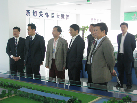 2008年11月15日,临沂市人民政府党组成员、市长助理李富山(前排右一)带领市督导调研组莅临我公司就市级重点项目建设有关情况进行督导调研。罗庄区人民政府副区长张洪龙(前排左二)等领导陪同,参观了公司的展厅、厂区并与公司管理层在管理中心三楼会议室进行了座谈。