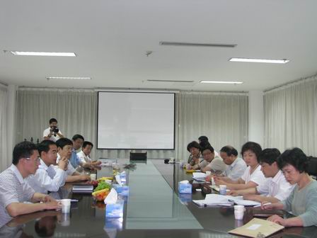临沂市科技局局长王文元等领导在三楼会议室座谈时的情景