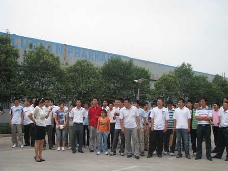 上图为新入职员工参观罗欣集团临沂罗欣医药公司的情景
