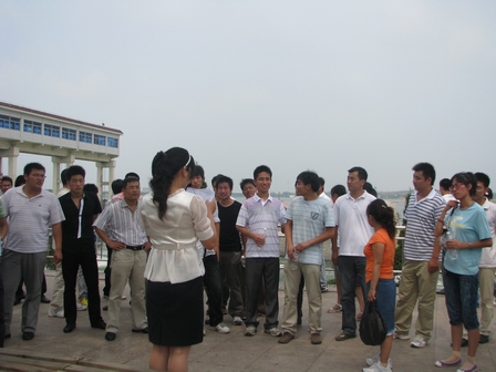 上图为新入职员工参观临沂小埠东橡胶坝时的情景