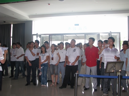 上图为新入职员工参观公司展厅时的情景