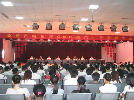 现场管理是GMP规范管理的基础,为了全面严格执行GMP规范生产,确保产品质量安全,罗欣集团于2009年8月15日在公司管理中心四楼礼堂召开全面严格执行GMP暨誓师大会。