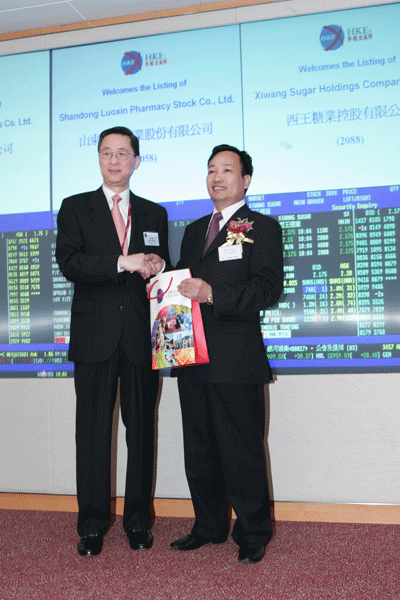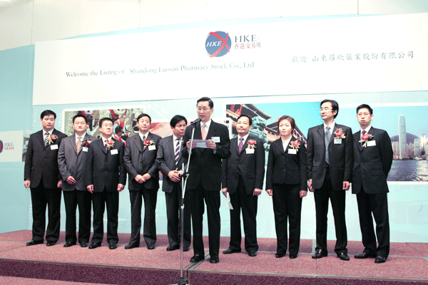 罗欣药业股票上市仪式赠送香港联交所纪念品留影2
