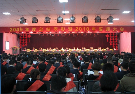 2010年2月21日上午,“集团2009年度总结表彰大会暨2010年誓师大会”在公司四楼礼堂隆重召开。会上公司对2009年度的卓越员工、岗位操作能手、优秀管理者、十大功勋、十佳销售省区经理、十佳销售员、创业模范、模范家属、工艺革新奖、新产品研发项目奖、优秀团队分别进行了表彰,并颁发了荣誉证书和奖金以资鼓励。各获奖代表发表了获奖感言,表示要珍惜荣誉,再接再励,以更高的目标要求自己,不断提升自身素质和工作能力,为集团的发展做出更大的贡献。会上有经济目标的领导班子和干部分别签订了2010年度目标责任书,举行了隆重的签约仪式。