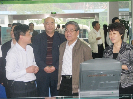 上图为省政协副主席齐乃贵(左二)一行参观公司展厅时的情