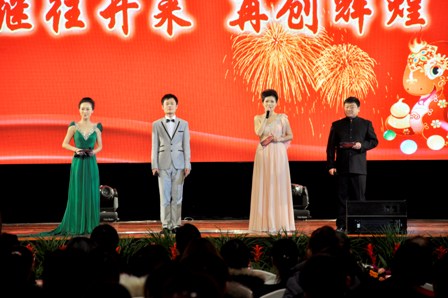 新春的歌,新春的舞,联欢会在舞蹈《鼓舞罗欣》的喜庆祝福中拉开了序幕,演出现场亮点纷呈,高潮迭起。斗志昂扬的《安徽团队销售战歌》、高亢激昂的《青藏高原》、温婉甜美的《烟花三月下扬州》、地方特色的《沂蒙山小调》、动人心弦的《如果没有你》等一支支动听的歌曲描绘着不同的美好意境;而小品《实诚人》、相声《我的梦想》、武术《功夫》、逗趣二人转、父女档双簧的精彩演绎,则为我们献上了一场别开生面的视觉大餐。