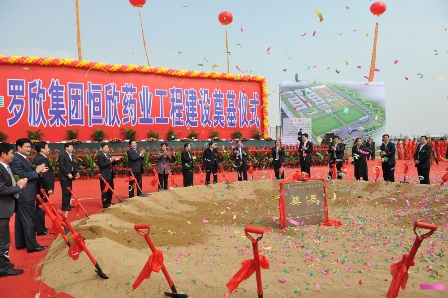 上图为各级领导为集团恒欣药业项目开工培土奠基