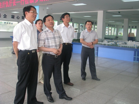 上图为市山东省卫生厅副厅长仇冰玉(左一)一行参观公司展厅时的情景