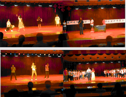 上图为公司领导、老员工们在台下观看演出