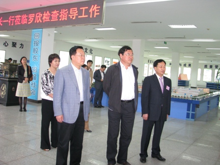 2011年9月28日,国家食品药品监督管理局副局长边振甲一行,在省食品药品监督管理局局长李民、市食品药品监督管理局局长崔增久等领导的陪同下,莅临罗欣检查指导工作。边局长一行观看了公司整体布局沙盘介绍,详细了解了罗欣集团的企业文化、发展历程、产品开发、市场营销、境外上市及未来发展规划等情况。