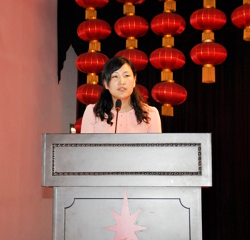 上图为宋良伟女士发言的情景