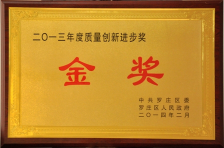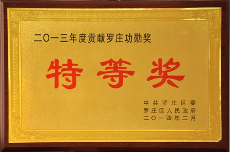 2014年2月10日,在区委、区政府组织召开的“全区2013年度工作总结表彰暨2014年经济工作会议”中,区委、区政府对2013年度全区科学发展先进单位、先进个人进行了隆重表彰。我公司被授予2013年度“贡献罗庄功勋奖特等奖”和“质量创新进步奖金奖”。