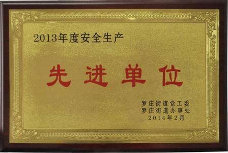2014年2月22日,在罗庄街道党工委、办事处组织召开的“罗庄街道2013年度表彰大会暨2014年度经济会议”中,街道党工委、街道办事处对2013年度经济工作先进集体和先进个人进行了表彰。我公司被授予2013年度“振兴罗庄贡献奖金奖”和“安全生产先进单位”荣誉称号。