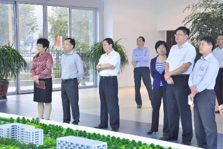 上图为赵爱华副市长(前排左一)一行参观公司展厅的情形