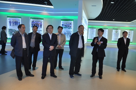 上图为省经信委副主任、党组成员安勇坚(前排左三)一行参观我公司展厅的情景