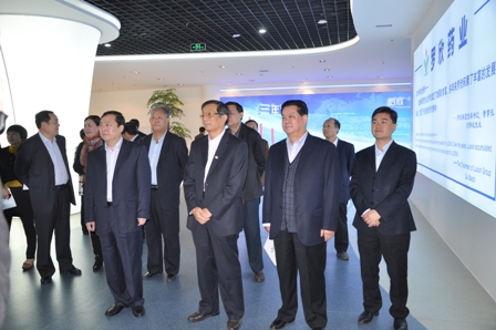 上图为市政协副主席刘继双(前排右三)带领市政协视察组一行参观我公司展厅的情景