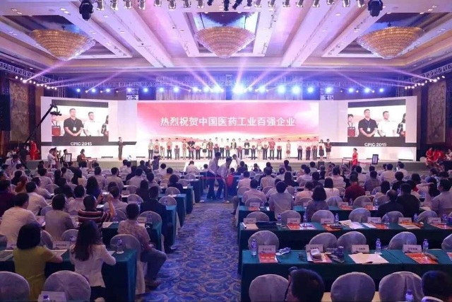 上图为2014年度中国医药工业百强发布会颁奖典礼现场