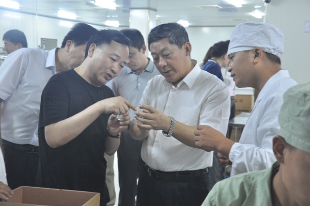 图为临沂市委副书记、市长张术平参观公司生产车间时情景