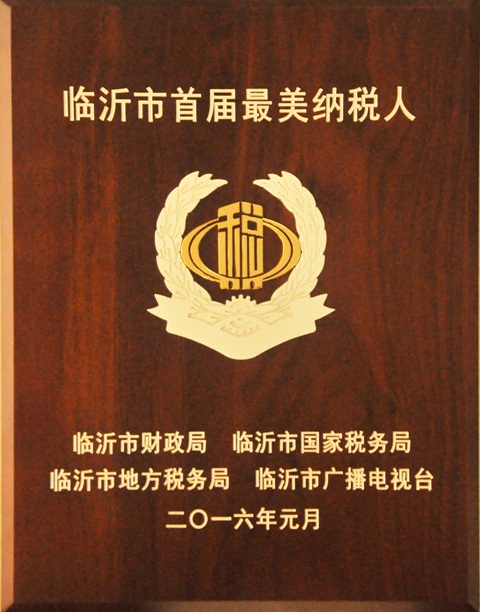 1月15日,临沂市首届“最美纳税人”颁奖盛典在临沂电视台举行,我公司在此次评选中荣获“最美纳税人”荣誉称号。市委常委、常务副市长左沛廷,市人大常委会副主任、市总工会主席孙丰刚,市财政局、国税局、地税局等部门主要领导参加了颁奖活动,股份集团副总经理韩风生代表公司上台领奖。